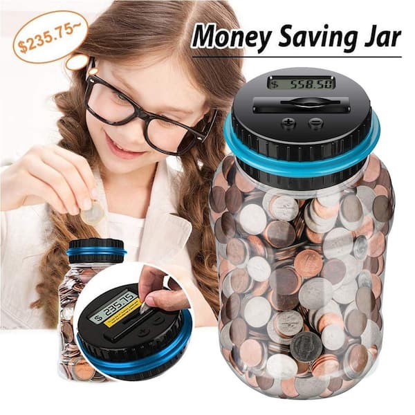 Digital Coin Counting Jar 1.8L Large Capacity Money Saving Box with LCD Display Easy Tracking Blue Gift for Kids Adults