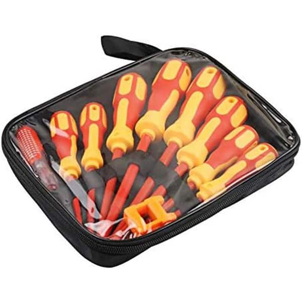Insulated Electrician Screwdrivers Set 3-6in Shank 7 Bit Red Non-Slip Grip Magnetic Tip Hand Tool 9-Piece