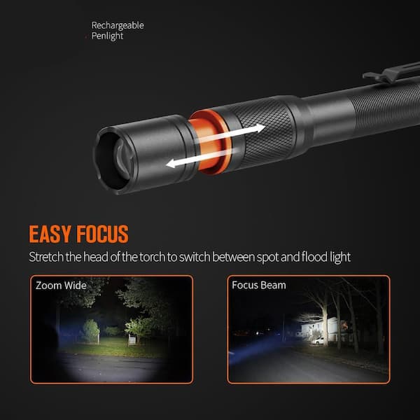 Pen Light Pocket Screen Flashlight with Clip 5 Modes 450 Lumens Mini Rechargeable Focusing IPX4 Waterproof