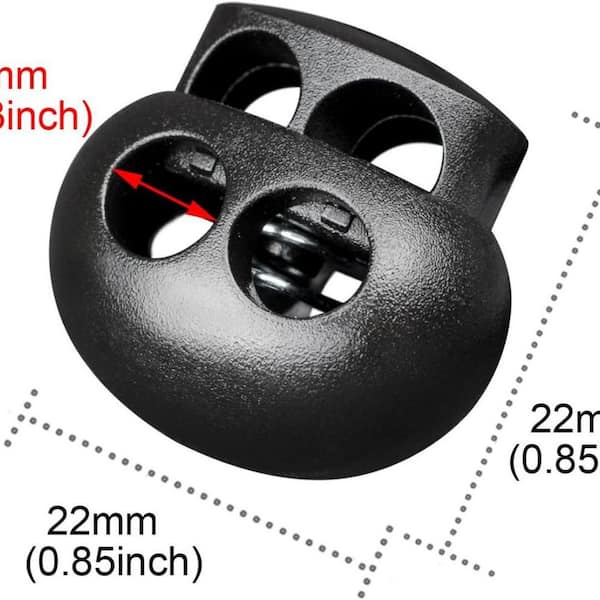 Plastic Cord Lock End Toggle Double Hole Spring Stopper Fastener Slider Toggles End (Black, 10 Pieces)