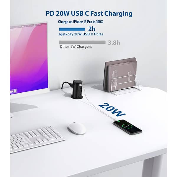 Pop up Outlet 15 Amp Tamper Resistant for Countertop with 4-Outlets, 2 USB-A, 20W Fast Charging 2 USB-C Ports in Black