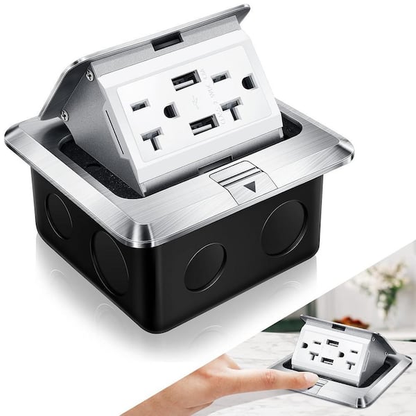 Silver 20Amp Tamper Resistant Duplex Outlet with USB-A - Electrical Outlet Cover Box (1 Pack)