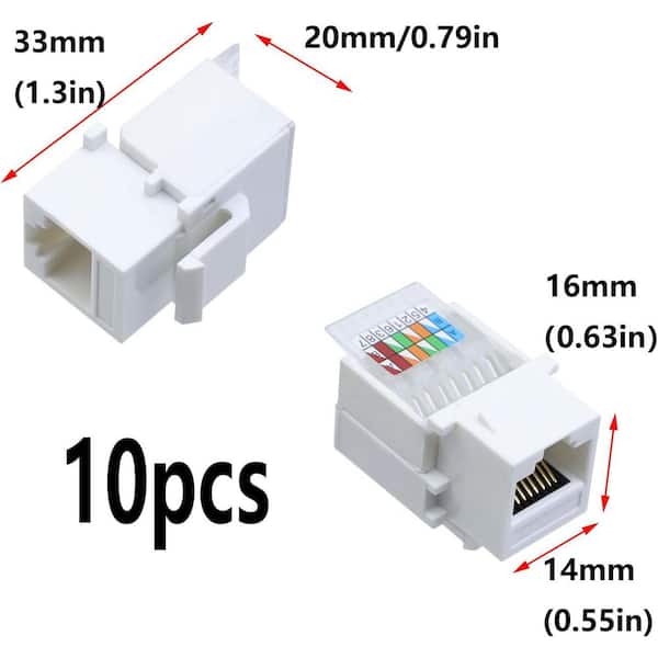 Tool-Less RJ45 Cat6 Cat5e Keystone Module Adapter Internet Network Ethernet LAN Cable 10-Pack