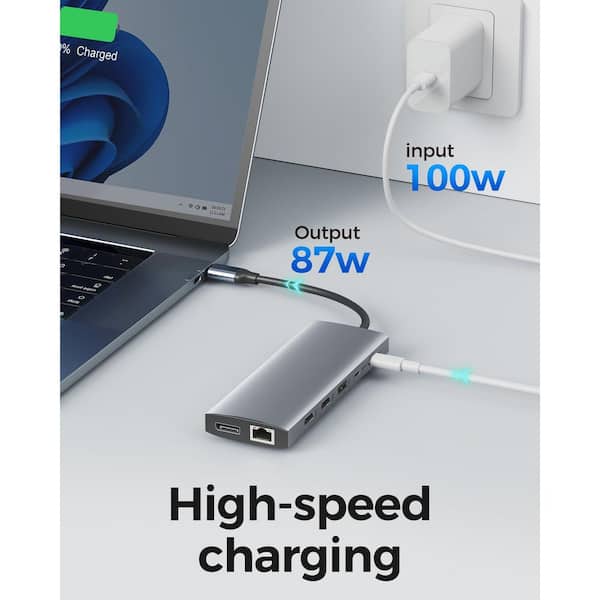 • Dual 4K HDMI, DisplayPort, 5Gbps ports, 100W PD charging