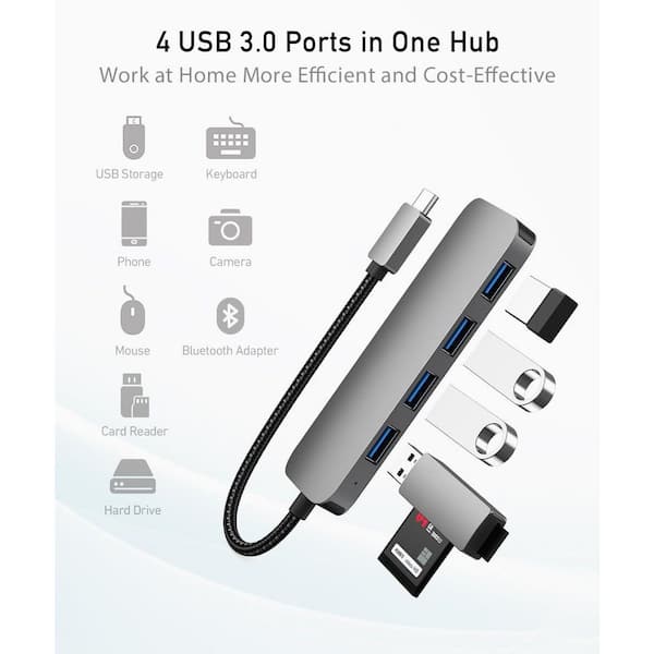 • Transforms 1 USB-C port into 4 high speed USB 3.0 ports
