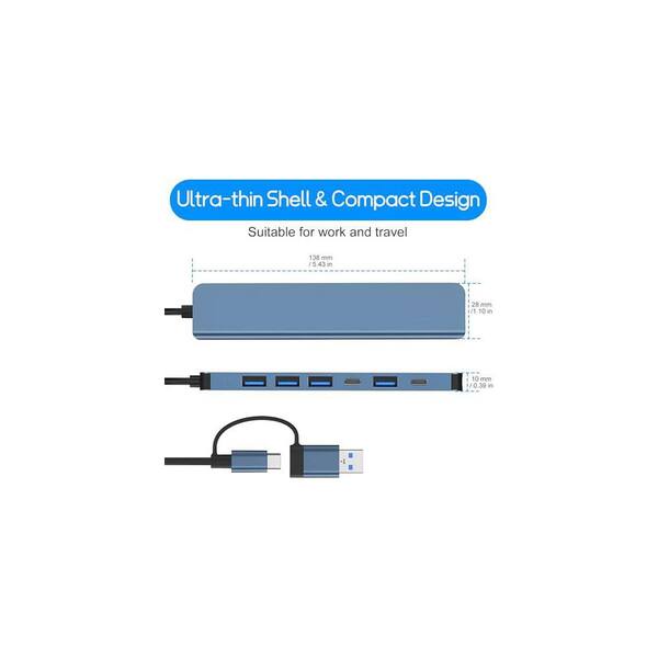 USB Hub 3.0 USB C Multiport Adapter 7-in-1 Splitter with USB 3.0 4 x USB 2.0 2 x USB C for MacBook Pro PC Laptop Grey