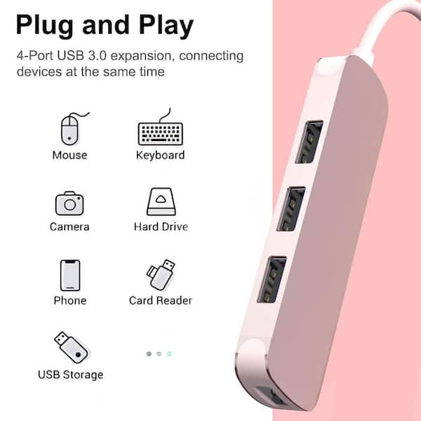 USB Hub 4-Port Dongle with USB 3.0 and USB 2.0 Multiple USB Port Expander for Laptop MacBook Surface Pro XPS Pink