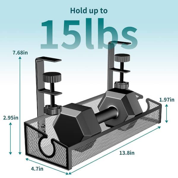 Under Desk Cable Tray Black No Drill Cable Organizer with Clamp Wire Management PC Cord Organizer 2 Pack