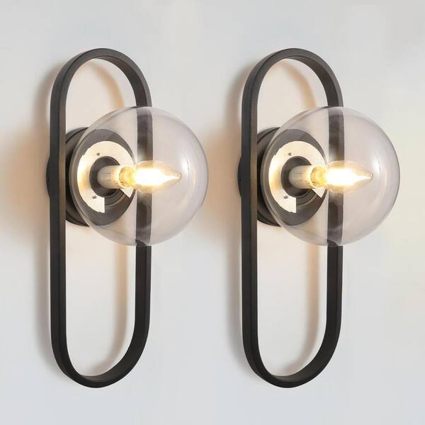 Upgraded 1 Bulb Matte Black Wall Sconce with Clear Globe Glass Shade 2-Pack