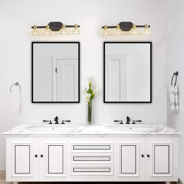 Vintage 4-Light Golden LED Wall Sconce with Clear Crystal Shades, Black Iron Finish for Bathroom or Hallway (No Bulbs)