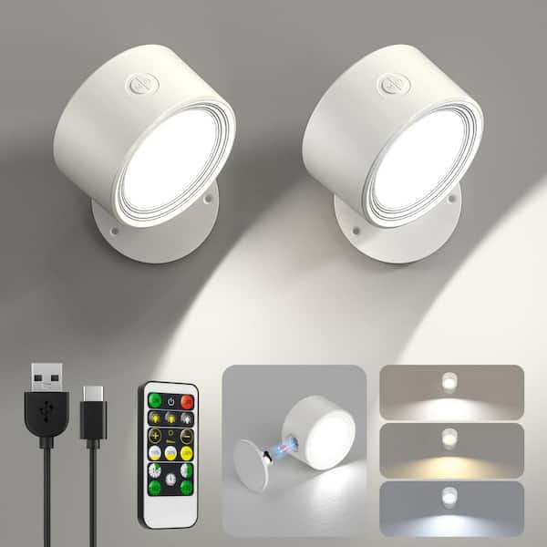 Wireless 1 Light White LED Wall Sconce with Remote Control 2-Pack