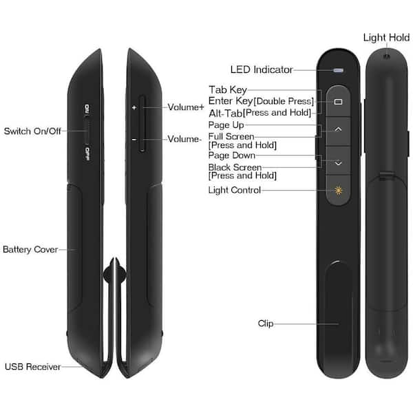 Wireless Presenter with Hyperlink Volume Control RF 2.4GHz USB PowerPoint Clicker Remote Screen Slide Advancer Black