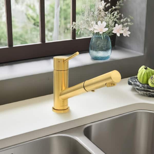 Bali Single Handle Pull Out Sprayer Kitchen Faucet Deckplate Included in Brushed Gold