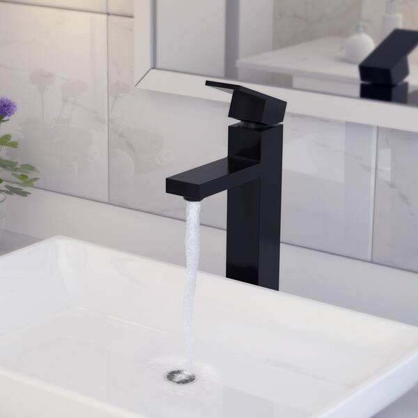 Santorini Collection. Single Hole Single-Handle Vessel Bathroom Faucet. in Steel Black finish