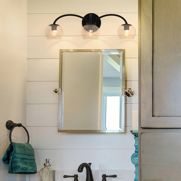 Belford 24 in. Plug and Play 3-Light Matte Black Vanity Light with SkyPlug