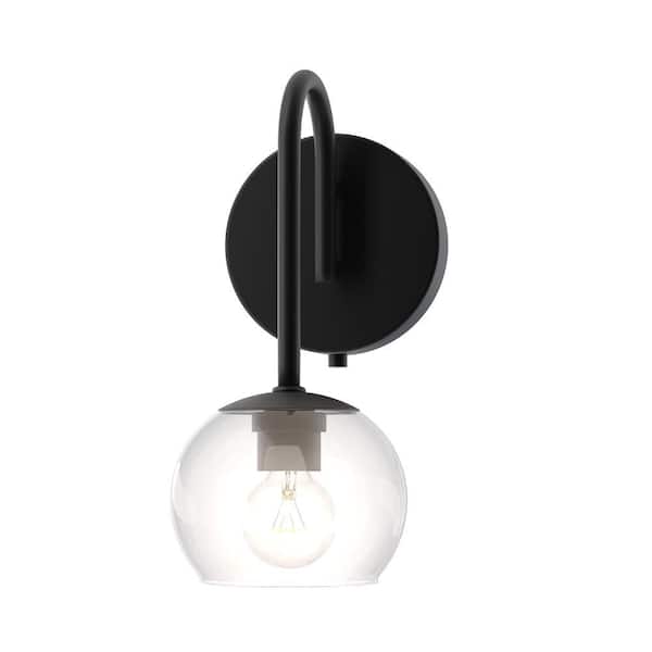 Belford 5 in. Plug and Play 1-Light Matte Black Wall Sconce with Sky Plug