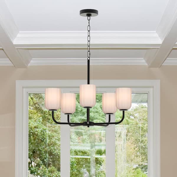 Parkmont 24 in. Plug and Play 5-Light Matte Black Chandelier with SkyPlug