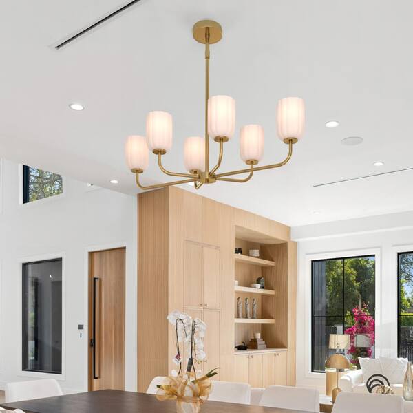 Parkmont 34 in. Plug and Play 6-Light Lacquered Brass Linear Chandelier with SkyPlug