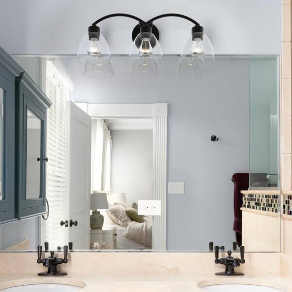 Ponce 24 in. Plug and Play 3-Light Matte Black Vanity Light with SkyPlug