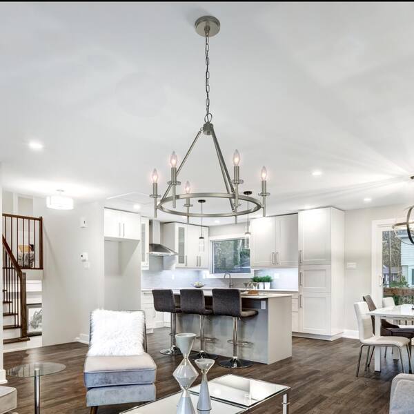 Sapello 24 in. Plug and Play 6-Light Brushed Nickel Chandelier with SkyPlug