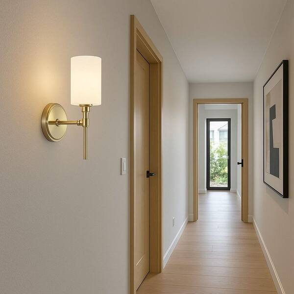 Wexton 1-Light 5.8 in. Polished Gold Plug and Play Sconce with SkyPlug