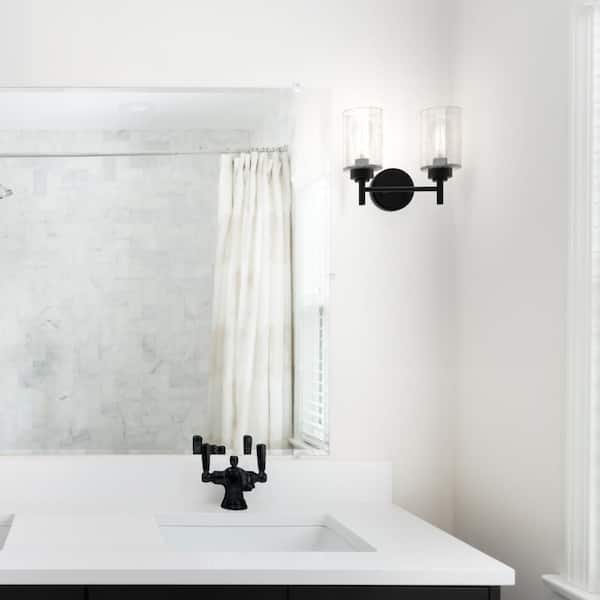 Wexton 12 in. Plug and Play 2-Light Black Vanity Light with SkyPlug
