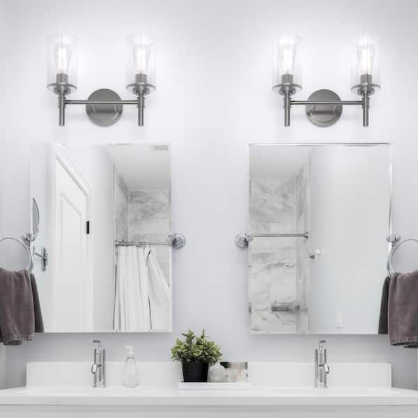 Wexton 13.38 in. Plug and Play 2-Light Brushed Nickel Vanity Light with SkyPlug