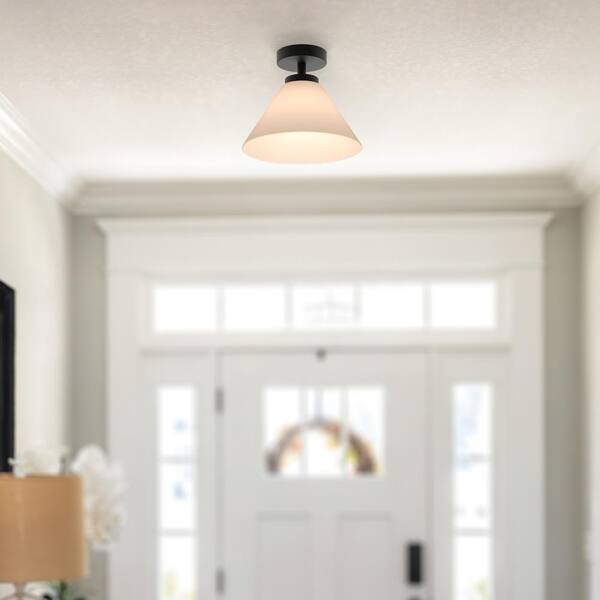 Wynridge 12 in. Plug and Play 1-Light Matte Black Semi Flush Mount with SkyPlug