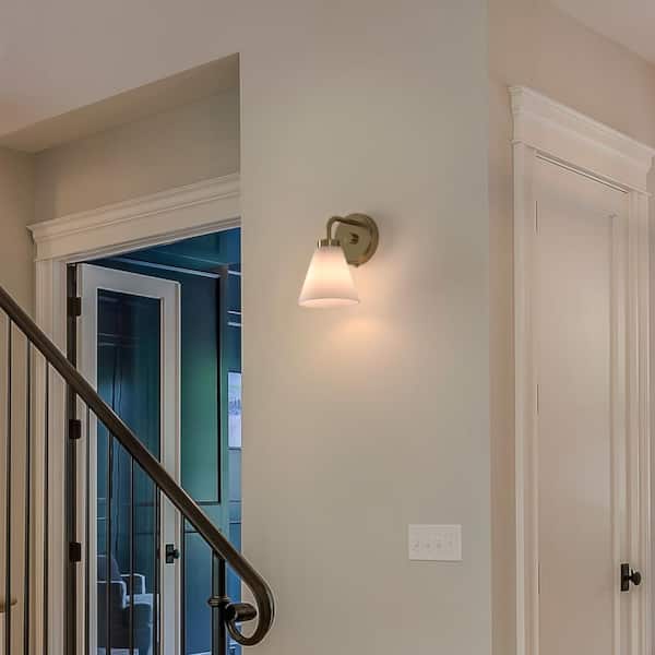 Wynridge 6 in. Plug and Play 1-Light Lacquered Brass Wall Sconce with SkyPlug