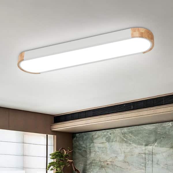 Lumin 38 in. W 1-Light White and Wood Integrated LED Flush Mount Minimalist Long Oval Ceiling Light for Bathroom/Kitchen