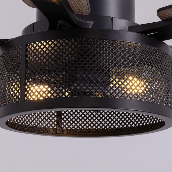 46 in. Indoor Matte Black Layered Caged Ceiling Fan with Light Kit, Five Reversible Blades and Remote Included