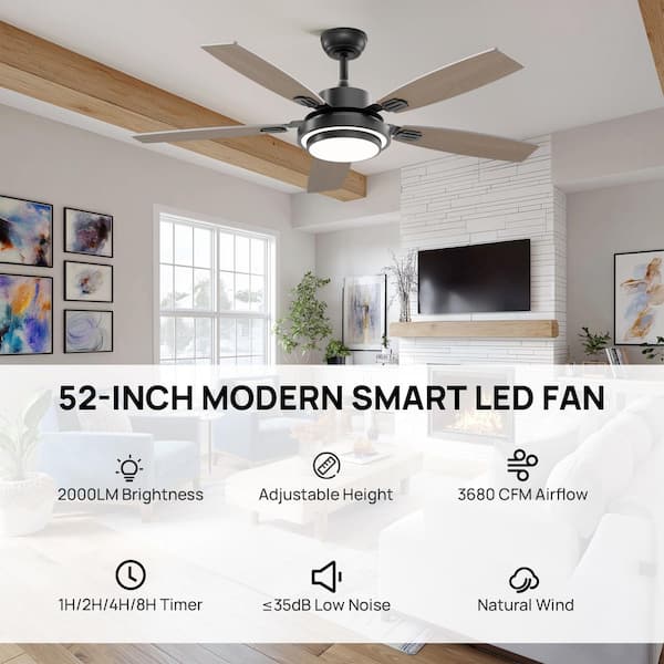 52 in. Indoor Black Downrod Mount Ceiling Fan with Integrated LED with Remote Control Included
