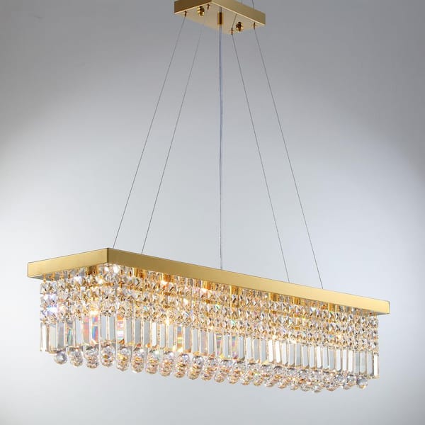 8 Light 39 In. Gold Traditional Crystal Chandelier for Rectangular Dining Table without Bulbs