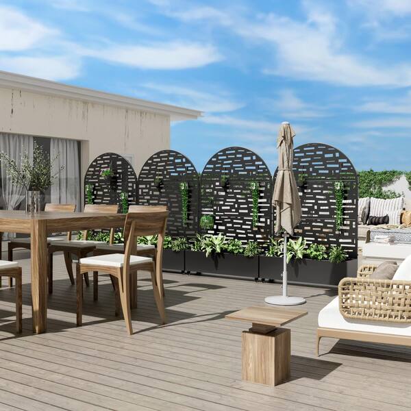 71.37 In. H x 46.8 In. W Black Metal Arch Outdoor Planting Box With Wide Brim Climbing Frame Wall Decor.