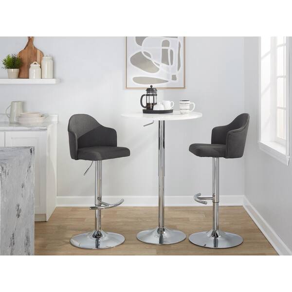 Ahoy 33 in. Charcoal Fabric and Chrome Metal Adjustable Bar Stool with Rounded T Footrest (Set of 2)