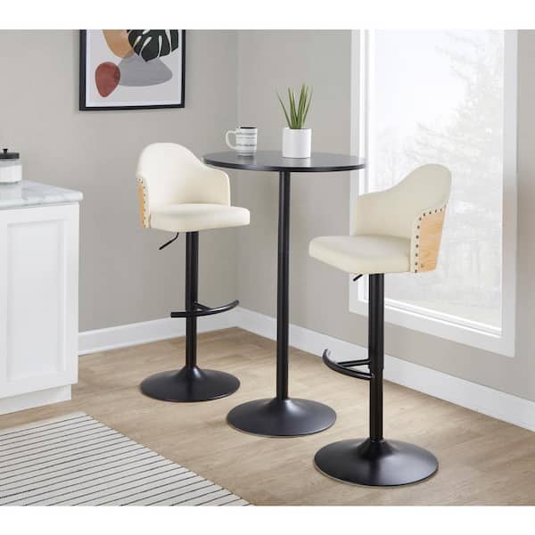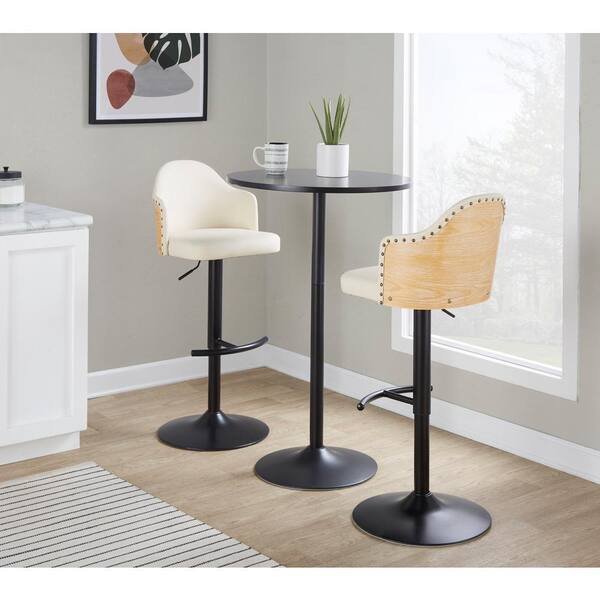 Ahoy 33 in. Cream Faux Leather, Natural Wood Backrest, and Black Metal Adjustable Bar Stool (Set of 2)