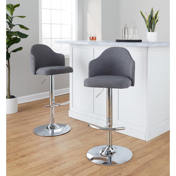 Ahoy 33 in. Grey Fabric and Chrome Metal Adjustable Bar Stool with Rounded T Footrest (Set of 2)