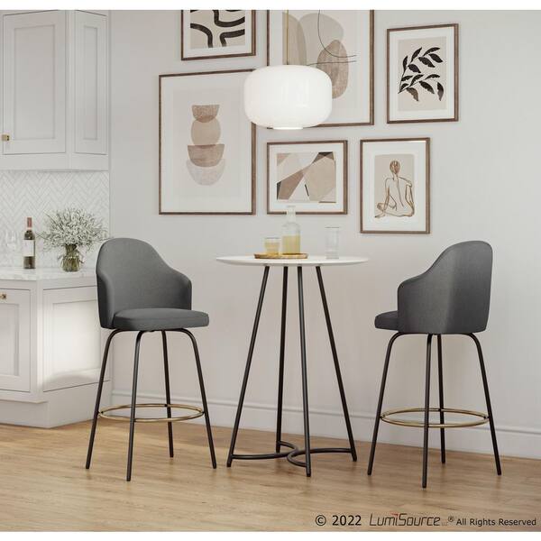 Ahoy 37 in. Grey Fabric & Black Metal Counter Height Bar Stool with Round Gold Footrest (Set of 2)