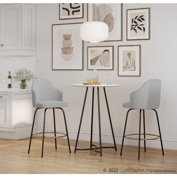 Ahoy 37 in. Light Grey Fabric & Black Metal Counter Height Bar Stool with Round Gold Footrest (Set of 2)