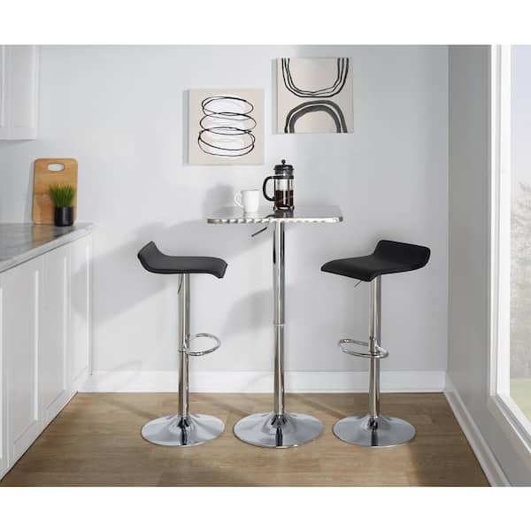 Bistro Square-Ale 3-Piece Chrome Metal, Black Faux Leather, and Silver Metal Top Bar Set
