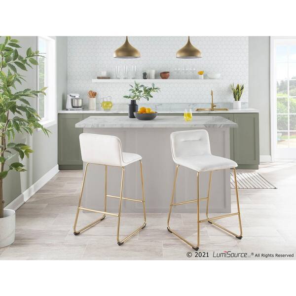 Casper 35 in. Cream Velvet and Gold Metal Counter Height Bar Stool (Set of 2)