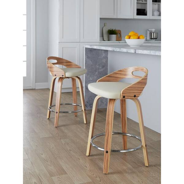 Cassis 24 in. Cream Faux Leather, Zebra Wood and Chrome Metal Fixed-Height Counter Stool (Set of 2)