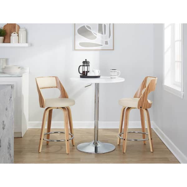 Cecina 24.5 in. Cream Faux Leather, Zebra Wood, Chrome Metal Fixed-Height Counter Stool Round Footrest (Set of 2)