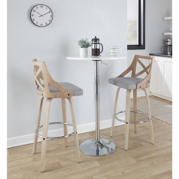 Charlotte 29.5 in. Grey Fabric, White Washed Wood and Chrome Metal Fixed-Height Bar Stool with Round Footrest (Set of 2)