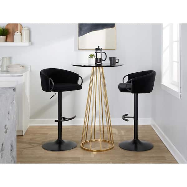 Claire 33 in. Black Velvet and Black Metal Adjustable Bar Stool with Rounded T Footrest (Set of 2)