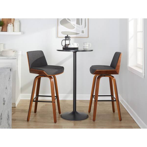 Corazza 30.25 in. Charcoal Fabric, Walnut Wood and Black Metal Fixed-Height Bar Stool (Set of 2)