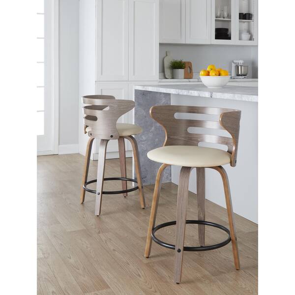 Cosi 23.25 in. Cream Faux Leather, Light Grey Wood and Black Metal Fixed-Height Counter Stool (Set of 2)