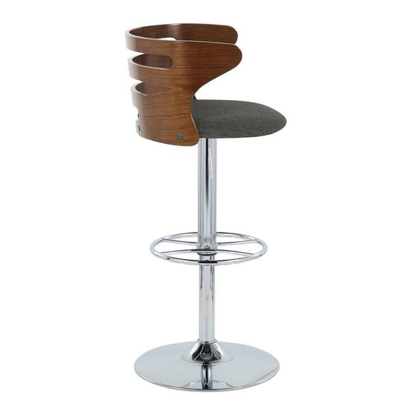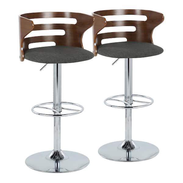 Cosi 32.25 in. Charcoal Fabric, Walnut Wood, Chrome Metal Adjustable Bar Stool Wheel Footrest (Set of 2)