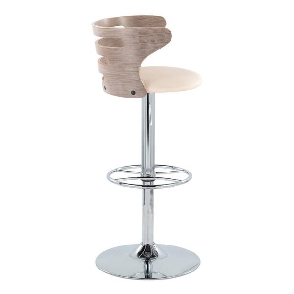 Cosi 32.25 in. Cream Faux Leather, Light Grey Wood, Chrome Metal Adjustable Bar Stool Wheel Footrest (Set of 2)