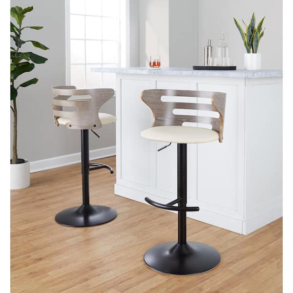 Cosi 32.25 in. Cream Faux Leather, Lt. Grey Wood and Black Metal Adjustable Bar Stool with Rounded T Footrest (Set of 2)